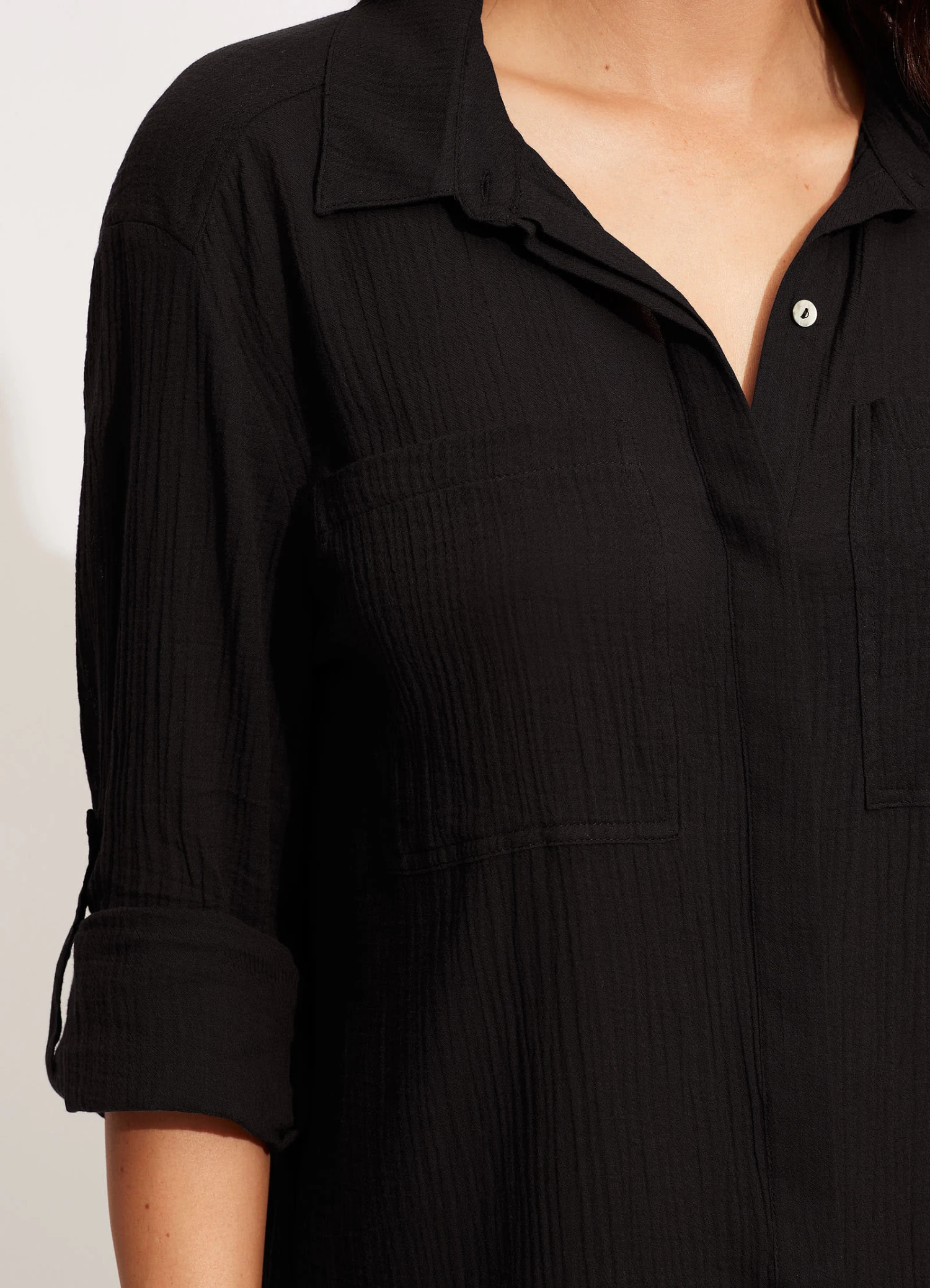 Be the first to review “Crinkle Twill Beach Shirt – Black” Cancel reply